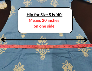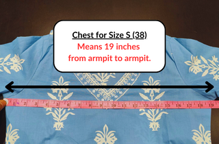 See this image of a Size S (38) Kurti. It's chest measurement is 19 inches on one side.